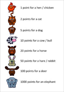 Przed podróżą wydrukujmy dziecku kartkę z cennikiem zwierząt. W czasie jazdy samochodem czy pociągiem wypatrujemy zwierząt za oknem i za każdego zauważonego zwierzaka dostajemy odpowiednią ilość punktów. Można ustalić, że gramy do 100, 1000, do czasu aż dojedziemy na miejsce… Angielski i matematyka w jednym, w jakże wakacyjnej formie!