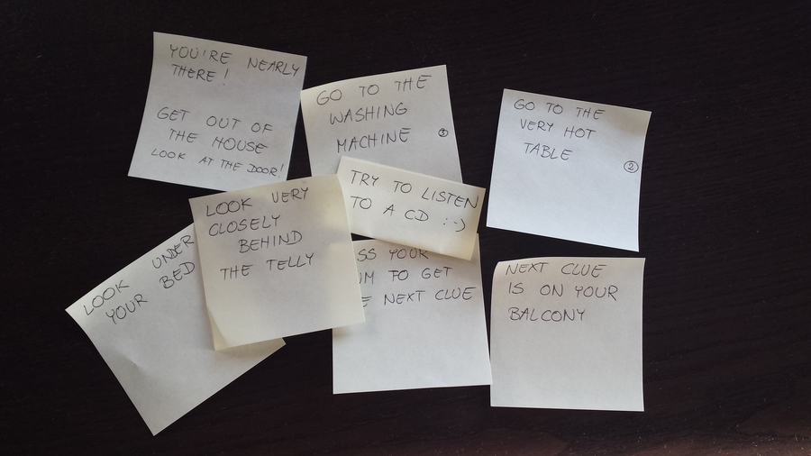 Poniżej fotka z karteczkami z naszego poszukiwania skarbu. Dobrej zabawy!